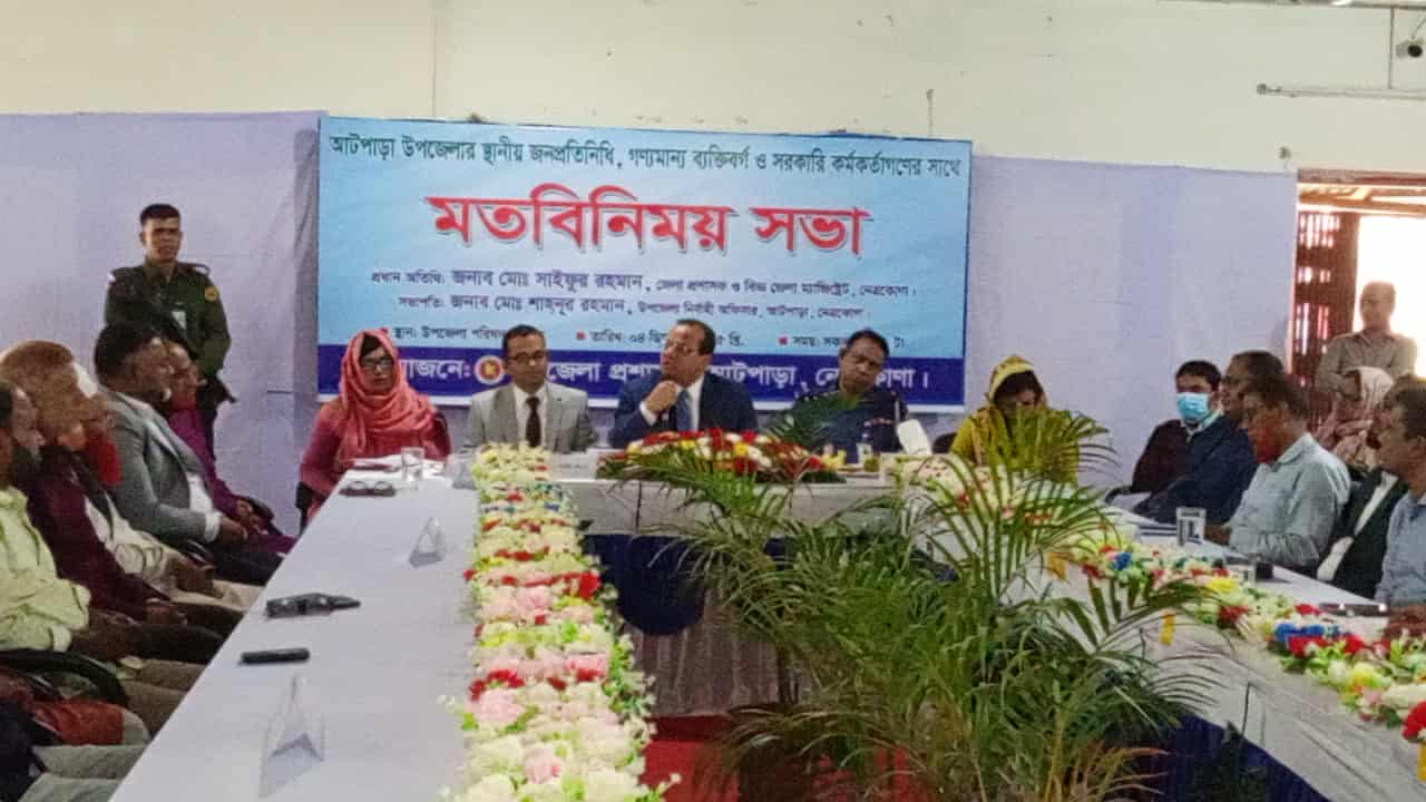 নেত্রকোনা জেলা প্রশাসক ও বিজ্ঞ জেলা ম্যাজিস্ট্রেট মো. সাইফুর রহমান আটপাড়া উপজেলার স্থানীয় জনপ্রতিনিধি, গণ্যমান্য ব্যক্তিবর্গ ও সরকারি কর্মকর্তা, এবং উপজেলায় কর্মরত সাংবাদিকদের সঙ্গে মতবিনিময় করেছেন।