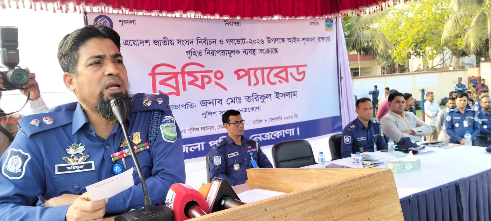 তিনি আজ রবিবার (৮ ফেব্রুয়ারী) বিকালে নেত্রকোণা পুলিশ লাইনস মাঠে আসন্ন ত্রয়োদশ জাতীয় সংসদ নির্বাচন ও গণভোট -২০২৬ উপলক্ষে আইন শৃঙ্খলা রক্ষার্থে গৃহীত নিরাপত্তামূলক ব্যবস্থা সংক্রান্ত ব্রিফিং প্যারেড শেষে উপস্থিত সাংবাদিক এসব কথা বলেন।