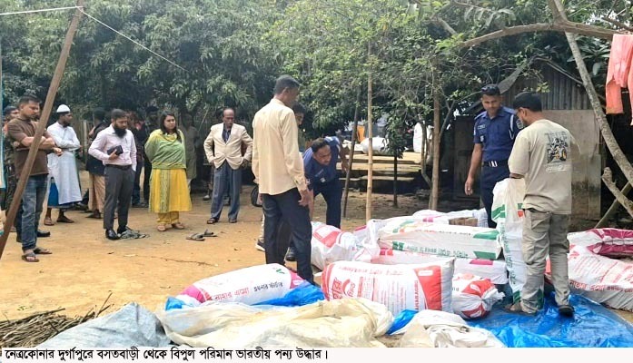 নেত্রকোনার দুর্গাপুরে অভিযান চালিয়ে বিপুল পরিমাণ ভারতীয় চোরাই পণ্য জব্দ করেছে উপজেলা প্রশাসন।