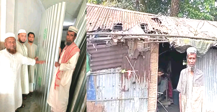 নেত্রকোণায় ফজল মিয়ার জীর্ণশীর্ণ বসতঘর মেরামতে জামায়াতে ইসলামীর ঢেউটিন প্রদান